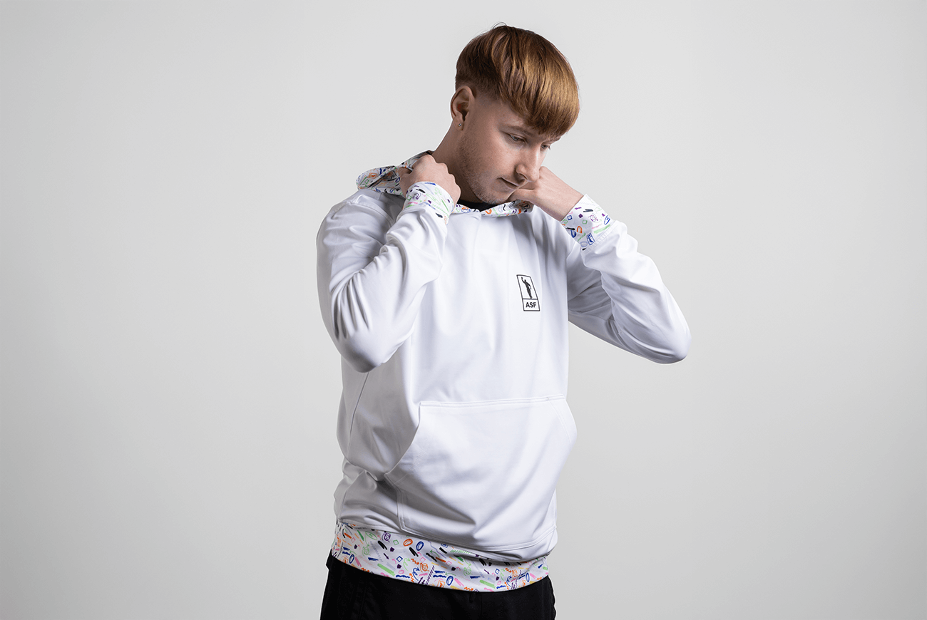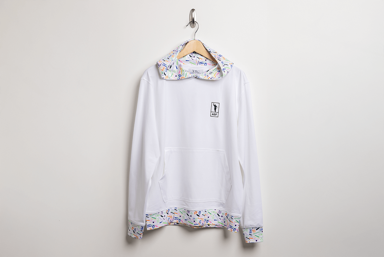 Crisp and modern without being precious. Soft stretch fabric, moisture control and UV protection make it surprisingly practical for a white hoodie. Perfect for travel, golf or a clean everyday look. Silicone branding keeps it sharp.